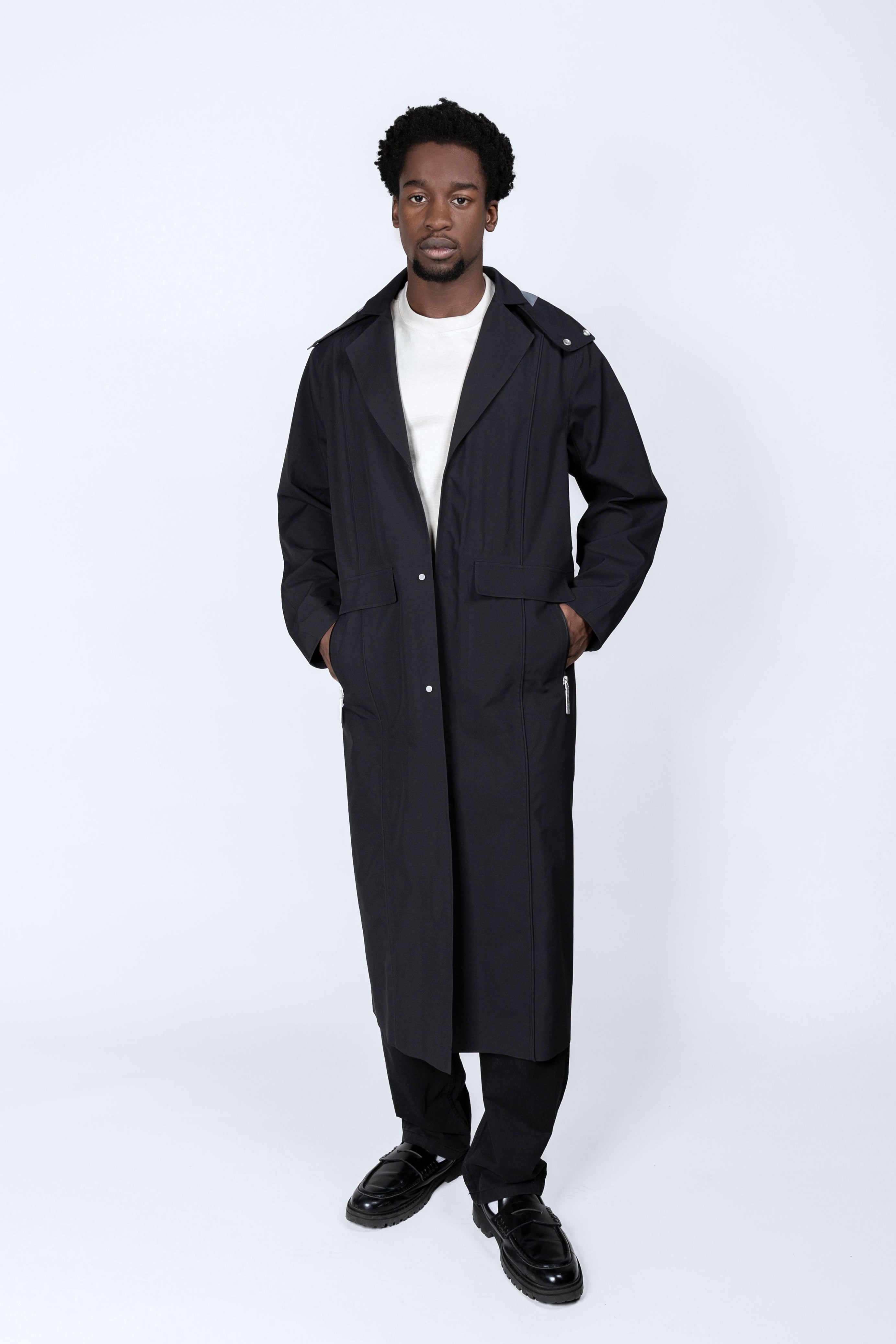 Crafted with precision and innovation, the trench coat features a remarkable 20k/15k waterproof and breathable rating, making it a reliable companion for the harshest weather conditions. Fully taped seams ensure ultimate protection against water penetration, while the trench’s timeless silhouette and minimalist design make it a versatile statement piece for any wardrobe